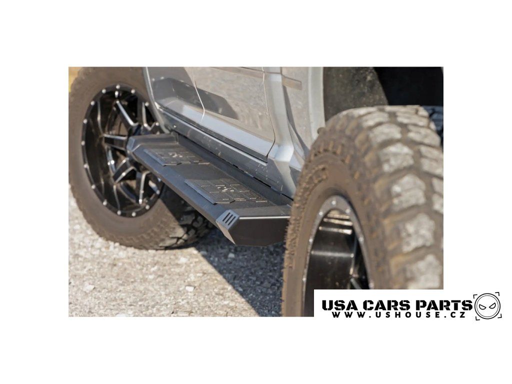 Vyměňte své úzké, tovární nástupní stupačky za širší a agresivnější nástupní stupačky HD2 od Rough Country! Tyto robustní nástupní stupačky, které sahají až po kabinu, výrazně usnadňují nastupování a vystupování z vašeho pick-upu. Díky odolné celoocelové konstrukci a zesílenému montážnímu řešení zůstávají tyto nástupní stupačky pevné a robustní i po mnoho let nastupování do kabiny. Každý schůdek je vybaven dvěma protiskluzovými deskami s vyraženým logem „RC“ pro dobrý vzhled a snadný nastupování. Design ve stylu „tech“ dodává vašemu pick-upu jedinečný vzhled , který je mnohem agresivnější než u továrních schůdků, zatímco širší profil je ideální pro správné postavení a vypadá proporcionálněji k větším pick-upům dnešní doby. Dodejte svému pick-upu jedinečný styl a impozantní vzhled s tímto neuvěřitelným vylepšením.