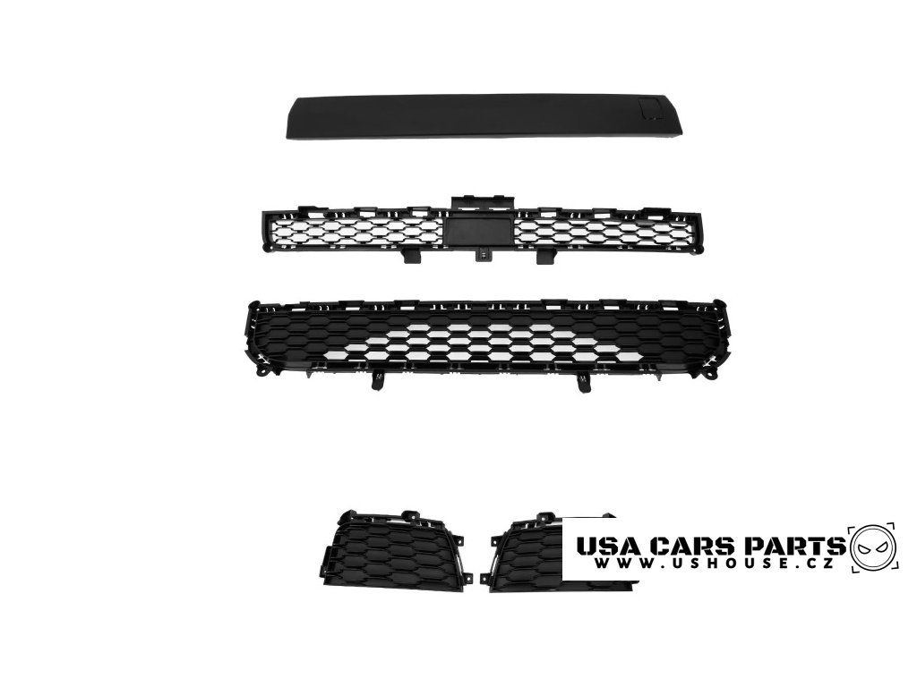 s otvory pro halogenové + LED HALOGENOVÉ ŽÁROVKY, bez otvorů pro Parttronics, kompletní sada, s ozdobnými lištami, s mřížkou nárazníku, se spoilerem nárazníku, černá
